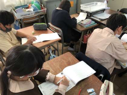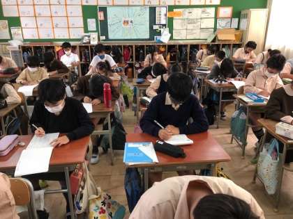 漢字テストをしています。宿題で取り組んだことがそのままテストに出ます。