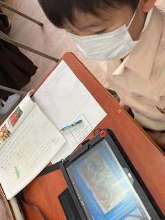 生き物探しで見つけて写真に撮ったものを見ながら、様子や気づいたことを書いていきました。