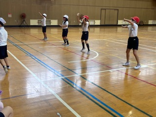 運動会のダンスのテストをしました。終わってからドッジボールをしました。