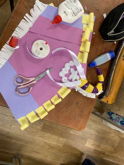 すてきな鳥になるように紙を丸めたり、切ったりして飾っています。
