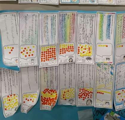 目標に向けて頑張っているな!と感じたら友だちがシールをはってくれます。シールで溢れている子もいてびっくりです。