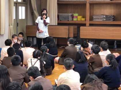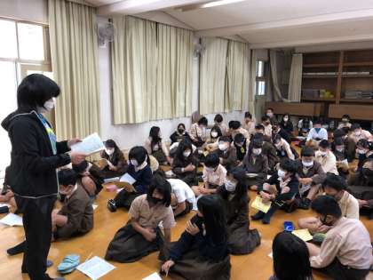 自然体験学習の前日、キッズルームに学年で集まり、しおりの確認をしました。5分前行動、自分の役割に責任をもつこと、グループで助けあい怪我なく戻ってくることなど、もう一度気持ちを引き締めて考えました。