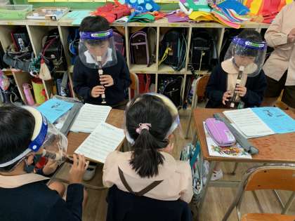 今月の曲は「ミッキーマウスマーチ」です。馴染みのある曲なので、リズムも分かりやすく、楽しみながら吹くことができています。
