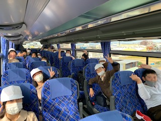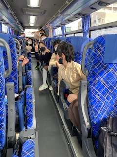 バスの中では、音楽を聴いています。酔い止めに配られた飴を口に入れています。