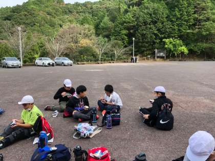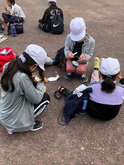ハイキング、ゴールをしてからつどいの広場でバニラアイスを食べました。