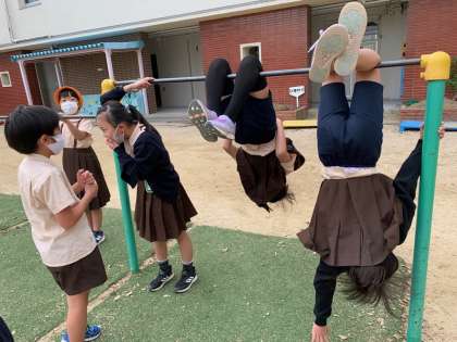 休み時間、涼しくなったのでたくさんの子どもたちが外に出て遊んでいます。