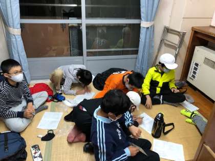 リーダー会議のときに、部屋で1日のふりかえりを書いています。