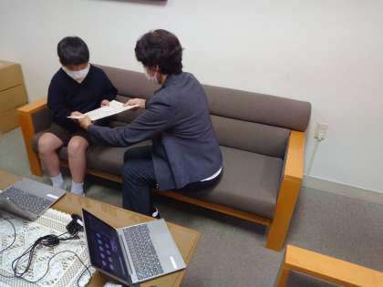 雨のため、オンラインで行いました。