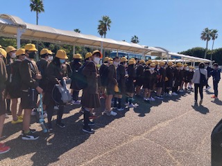 スペイン村に到着!学年で写真撮影です。