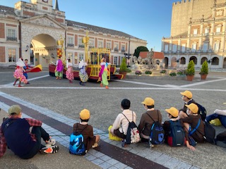 4時少し前に集合場所のシベレス広場に集まってきました。パレートを見ながら、一緒に手拍子をしたり踊ったりしています。