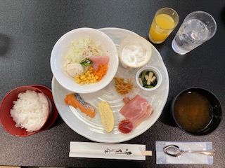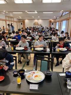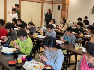 あおさのお味噌汁が出ています。納豆が欲しい子は、もらいに行っています。