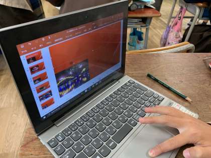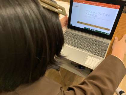 パワーポイントを使って、各自祭りを調べたものをまとめています。
