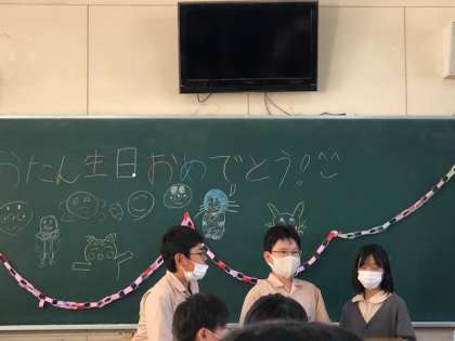 10月の誕生会を行いました。バースデー係が心をこめて作ったカードを渡し、みんなでお祝いの歌を歌ってから、第二グラウンドでドッジボールとおにごっこをして遊びました。