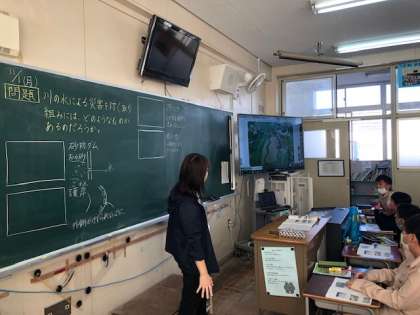 流れる水のはたらきの発展で、川の水による災害を防ぐ取り組みについて考えました。