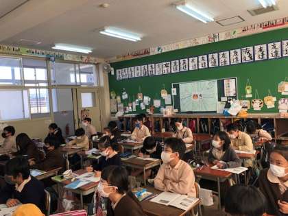 同じ場所の2枚の教科書の写真を見比べて、どうして河川敷に家が建っていないのかや、砂防ダムの役割などについて確かめました。