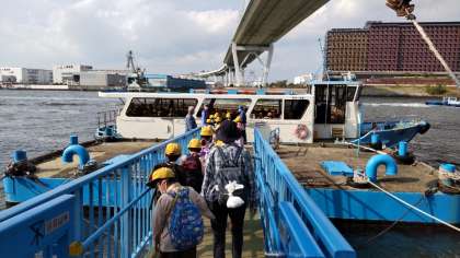 渡し船に乗った後、天保山の公園へ行き、鬼ごっこなどをして遊びました。