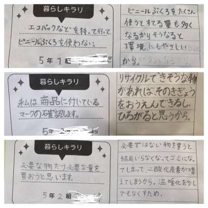 環境問題について振り返り、持続可能な暮らし方について自分ができることを書きました。
