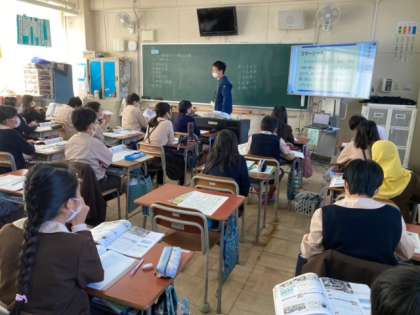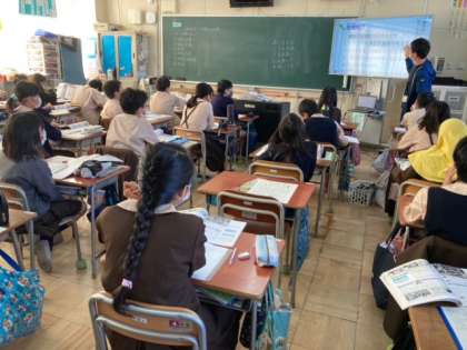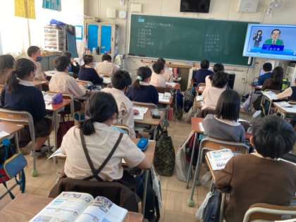 テレビ局でニュース番組がどのようにして作られるか、出前授業で考えたことをもとに確かめました。