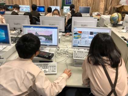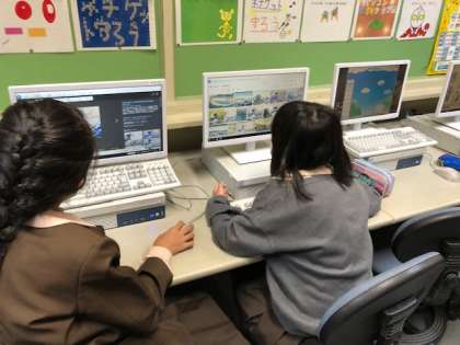 パソコン室で、これから模写する日本画のデザインについて調べました。