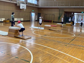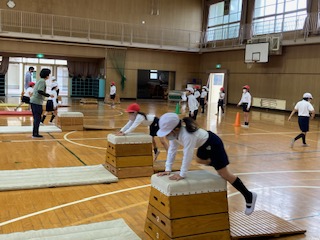 とび箱の2段と3段を跳ぶ練習をしました。自分で跳ぶところを選び、挑戦しています。