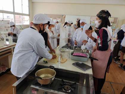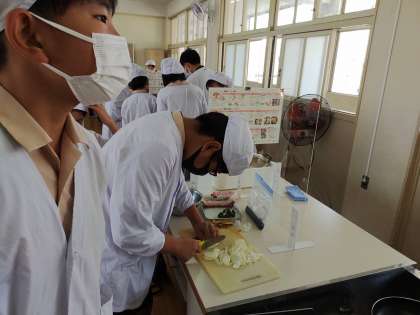 今年初めての実習です。包丁の使い方を復習しながらすすめていきました。