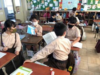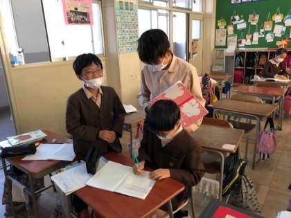 どのような解き方をしたか、友達と交流し、くらべています。