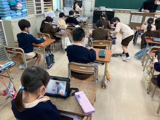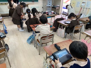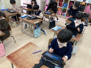 タブレットで算数の問題を解いたり、NHK for Schoolの動画を見たりしています。使い方もすっかり慣れました!