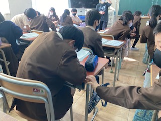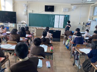 本文の結論部分から筆者が述べたかった事(主張)を読み取りました。「考える事が受けついでいくことになる」という部分に納得するかしないかペアで話し合った後、全体でも交流しました。筆者の述べ方が、説得力があるかについて、内容と合わせて明日から本論を読み取っていきます。