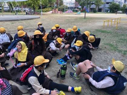 子ども本の森を出てから、クラス単位で行動しています。