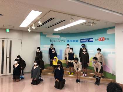おみやげの新聞の撮影をした後、社内を見学しました。編集局は状況によりDVDの視聴となりました。