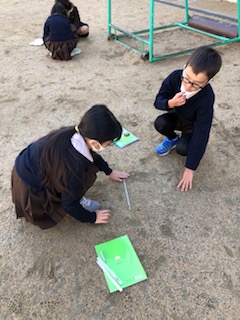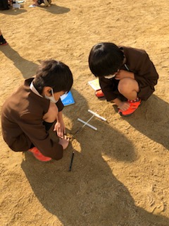 日なたと日かげの温度の違いを観察しました。違いの決め手は日光ということがわかりました。温度計の扱いも上手です。