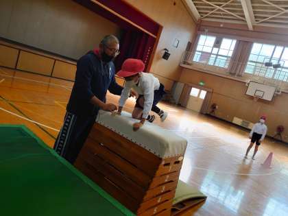 旭区役所の「運動能力サポート事業」の一環として、昨日2年生が、跳び箱の指導をしていただきました。