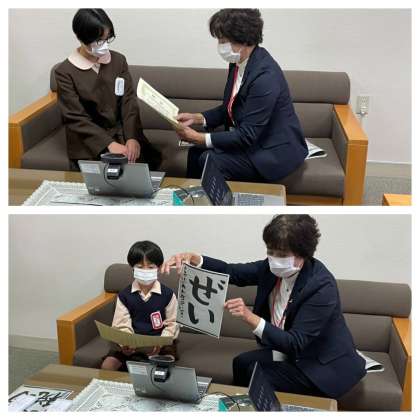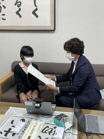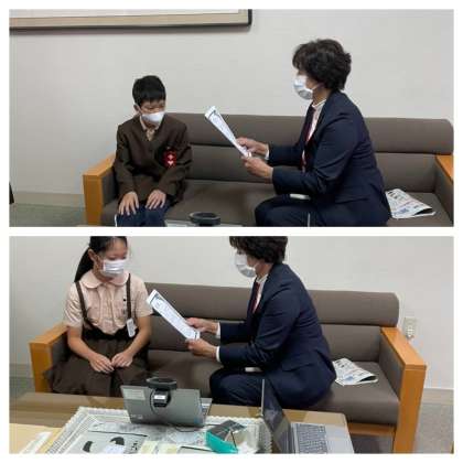 続いて、税務署主催の「税に関する書道」に応募して入選した2人に賞状を渡しました。