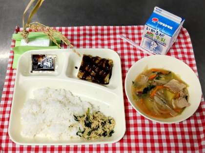 今日は、お好み焼き、豚汁、とり菜っ葉いため、ごはん、牛乳でした。