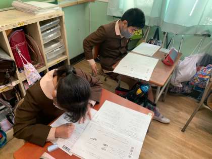 まず、しっかりと問題を読み問われていることを意識しながら読み取りをすること、記述問題では条件に合うようにきちんと書くことを伝えました。