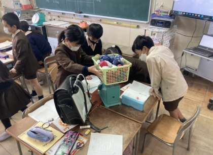 はかりを使ってランドセルや絵の具セット、習字セットをはかり、表し方を学習しました。