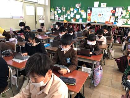 「和の文化を受けつぐ」で学習したことをもとに、一人一台端末を使ってリーフレットを作り始めました。
