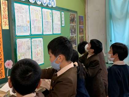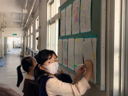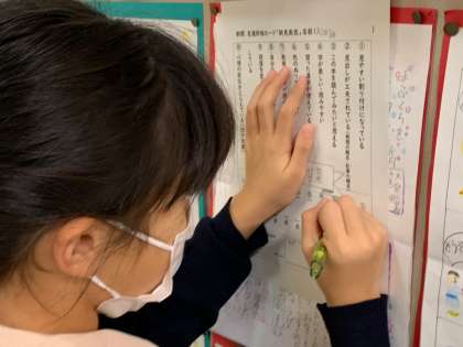 友だちの新聞を見て自分の新聞のふりかえりもしていきます。