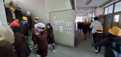 2時間目、家庭科室から出火したと想定して、避難訓練を行いました。事前の学級指導が徹底していたので、全児童が運動場に避難するまで、3分5秒でした。