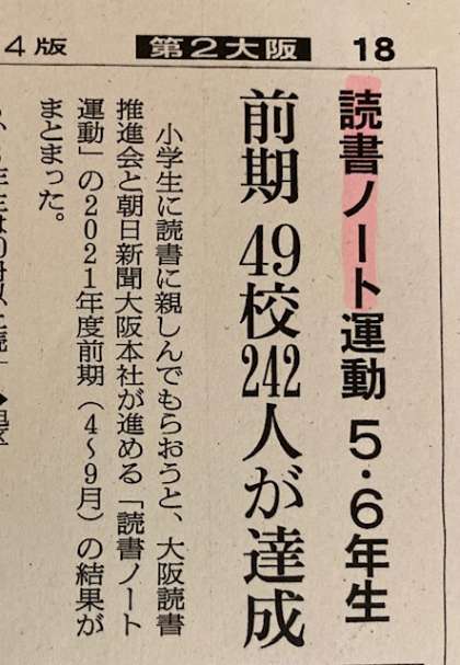 毎年全校で取り組んでいる「読書ノート運動」で、今年も前期達成者名が、朝日新聞と朝日新聞デジタル版に掲載されました。