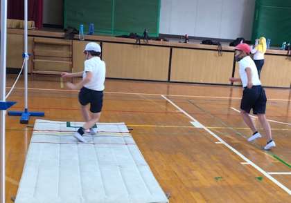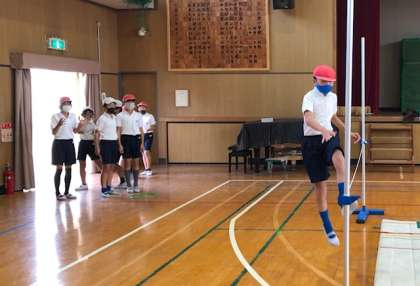 バーではなくゴムひもで練習しています。自分のレベルにあった高さのコースを選び、フォームを意識しながら練習しました。
