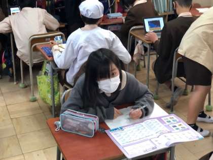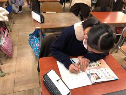 明日の経年テストに向けて英語の単語の練習や算数の巻末問題に取り組んでいました。