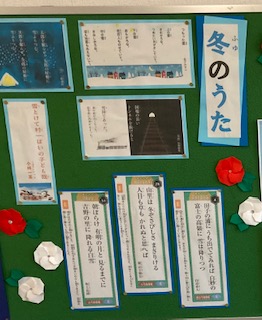 「冬のうた」として、百人一首や小説、詩の中から冬に関係する描写のある一節を紹介しています。有名なうたや、詩など、声に出して読んでみたくなります。