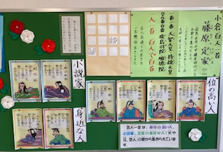 百人一首の解説などが掲示してあります。四年生の国語科で出てきますが、他の学年の人も冬休み、挑戦してみましょう!