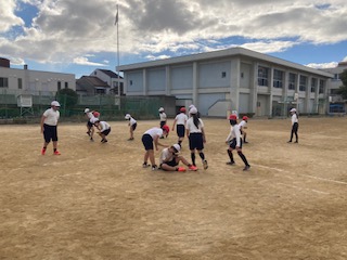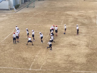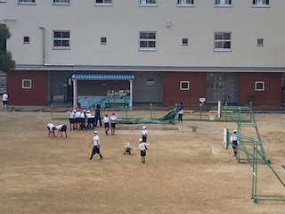 十字鬼ごっこをやっていました。寒くても元気です!