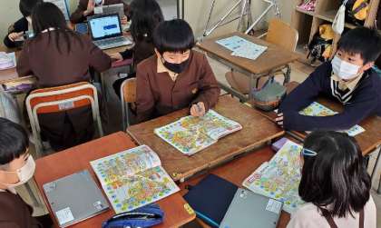 アルファベットの大文字と小文字を覚えるためのゲームをしました。グループで一人ずつ順番にAからZまで言えれば、K先生からトランプがひけます。ひいた数がグループのポイントになるので、楽しんで行いました。