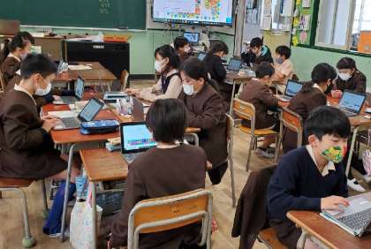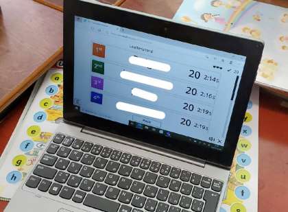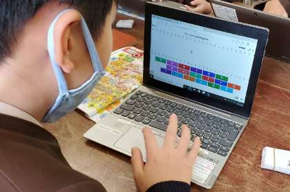 アルファベットを覚えるためにパソコンを使ったゲームをしました。小文字と大文字を正しく合わせればクリアです。タイムによって、ランキングがでるので盛り上がりました。