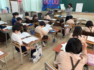 生活科のテストを返してもらいました。問題をもう一度見直して、しっかり見直しをしています。