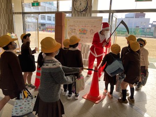 元気に帰っていきました。何故か、カマを持ったサンタさんもみんなを見送ってくれました。「良いお年を!」とあいさつして帰る子もたくさんいましたよ。