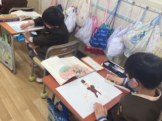 「花咲か爺さん」のお話を読み、乾燥画を描きました。